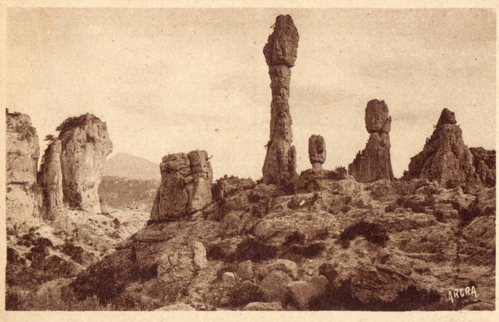 Il y a deux calcaires différents à Mourèze au sens large, la dolomie en bas est un calcaire plus dur au niveau du mont Liausson donc, il y a deux végétations différentes et donc une faune différentes. Cette roche provient des dépôts sédimentaires laissés par la mer, il y a plus de 160 millions d’années. L’érosion est à l’origine de cette forêt de pierres (la plus étendue de France !). Les eaux dissolvent les roches les plus tendres et dégagent les éléments les plus durs et résistants. De l’ère Primaire au Quaternaire, des centaines de roches de toutes origines retracent les grands bouleversements qui ont jalonné l’histoire de notre planète. Le cirque de Mourèze en est un épisode. Des vestiges archéologiques attestent d’une présence humaine à partir de 7.000 av J-C. Le Cirque de Mourèze a autrefois abrité les hommes de la préhistoire (plusieurs oppida et cavernes), puis accueilli les charbonniers et les bergers. Aujourd’hui, l’absence de troupeau laisse la végétation recouvrir le site.
